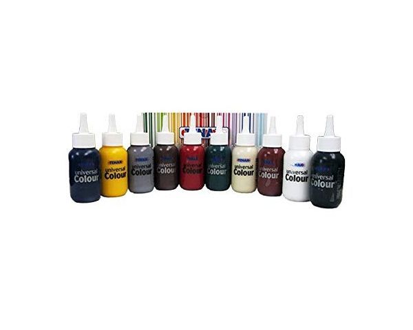 (El set de 10 colores contiene los colores amarillo, marrón, blanco, negro, rojo, verde, azul, gris oscuro y color crema).